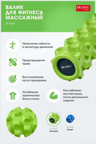SF 0247 Валик для фитнеса Bradex массажный, зеленый