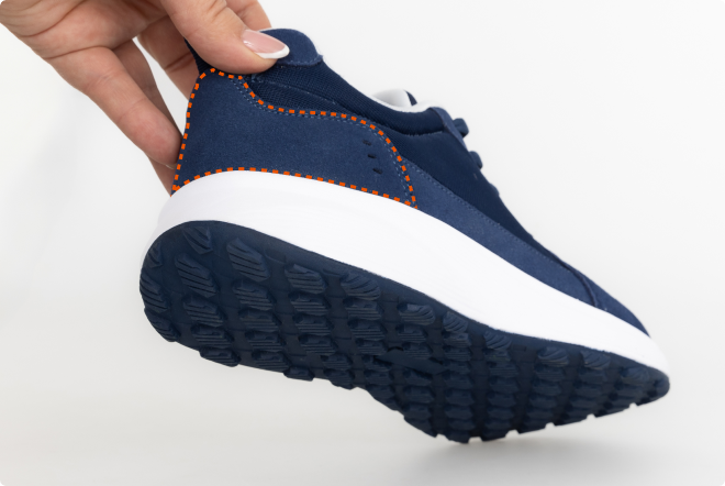 Наличие плотного формоустойчивого задника позволяет фиксировать стопу, предохраняя от излишнего трения, приводящего к натоптышам,  и заваливания в голеностопе.