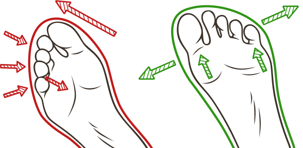 Форма мысочной части повторяет форму стопы, что напоминает трендовую сейчас «босоногую обувь» BAREFOOT. Однако, в отличие от босоногой, обувь GOOSE имеет ряд преимуществ, которые делают ее настоящей физиологичной обувью, заботящейся о ваших стопах , особенно учитывая такую их особенность, как увеличенная ширина.
